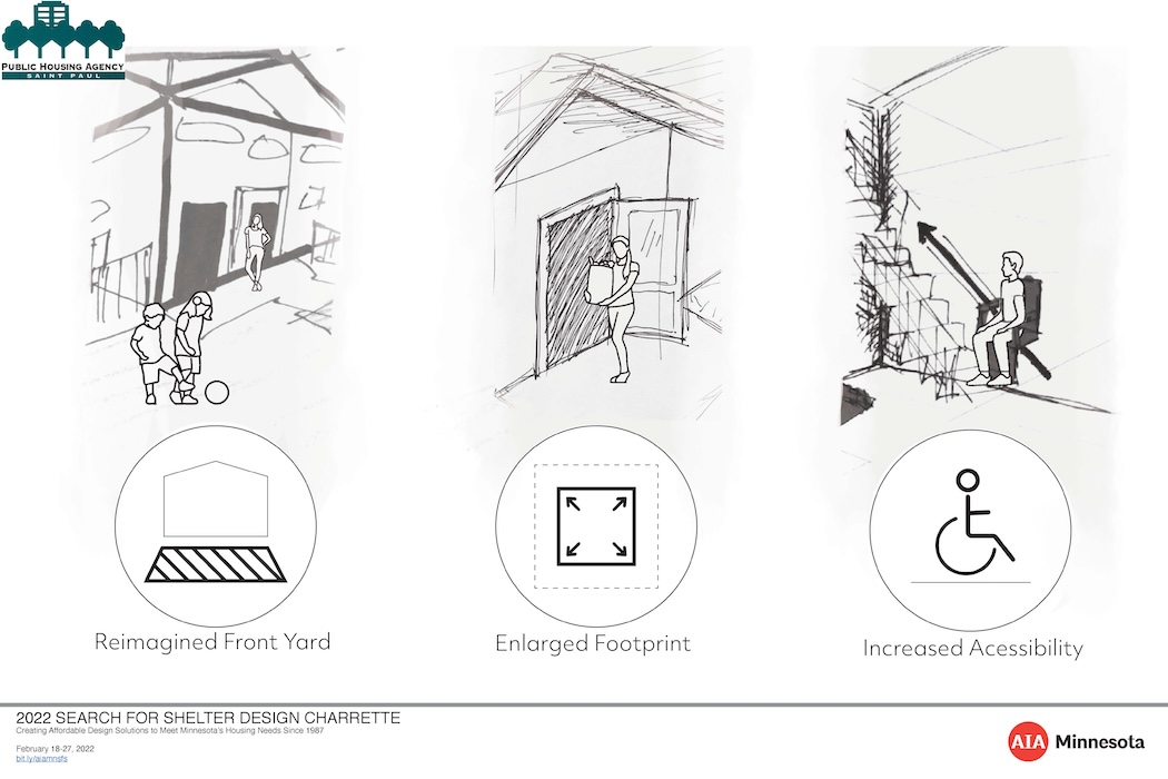 North Country Cooperative Foundation, PRG, Inc., Riverton Community Housing, Smart North, and the St. Paul Public Housing Authority brought design challenges to our volunteers for Search for Shelter 2022.